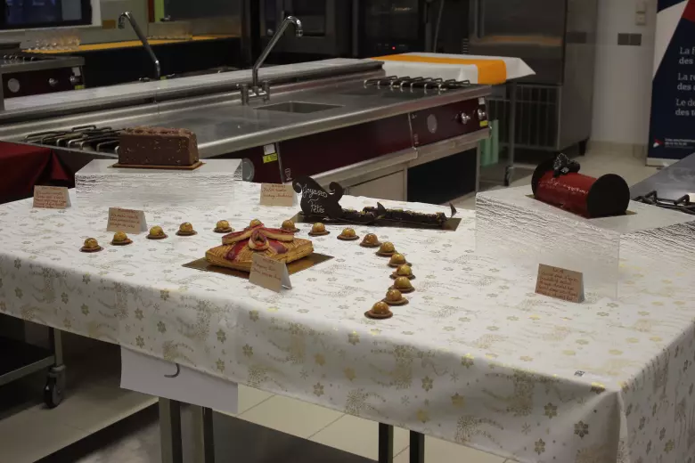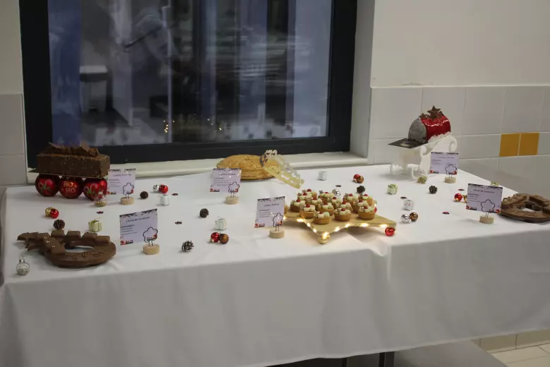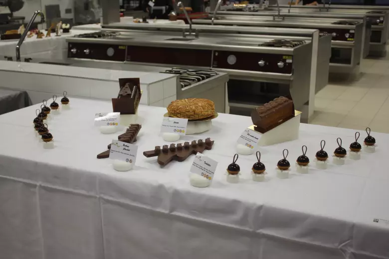 En effet, la fabrication imposée pour ce concours régional du MAF Pâtissier Hauts de France se décomposait comme suit : Deux Galettes des Rois, deux Bûches de Noël, deux gâteaux de voyage, 24 tartelettes et 24 bonbons au chocolat en 7h00 de travail. Dans cette optique, de 8h00 à 15H00 dans les laboratoires du CFA de Saint-Saulve, un jury composé de quatre pâtissiers reconnus a surveillé la fabrication, la cuisson, la couverture, le moulage, le montage, les choix de produits et bien sûr l’hygiène sur l’ensemble du process.